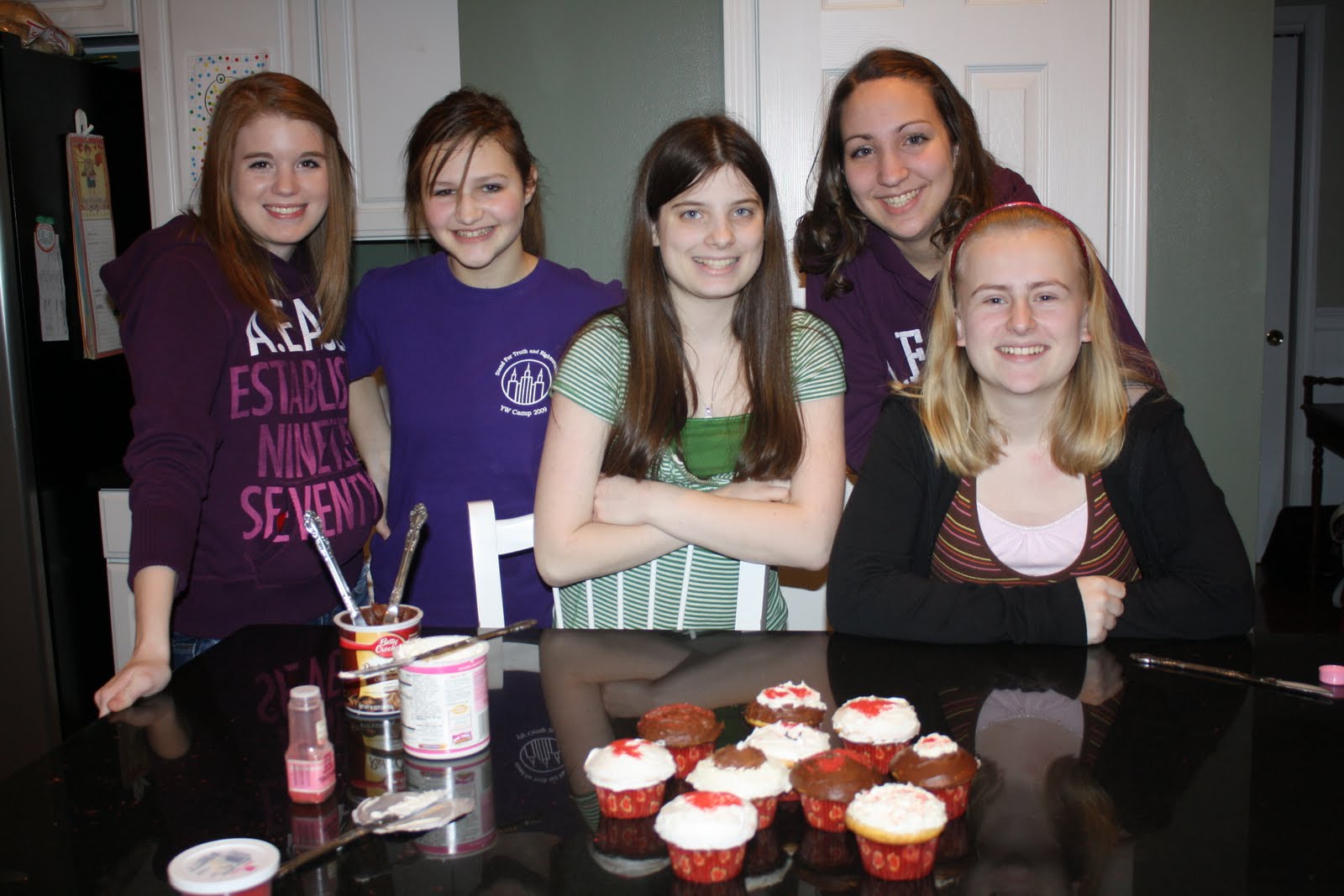 One of Kristie's favorite books is Icing on the Cake. She decided to have a book club party and talk (giggle, laugh out loud, etc.) about the book and then make cupcakes and stamp cards with cupcakes on them. She invited a few friends and they had a great time!!